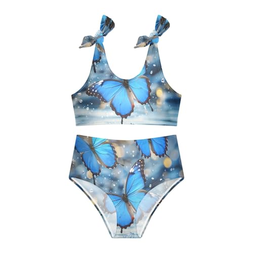 Girls' Bikini Set, Blue Butterflies Above The Water Kids Swimsuit 2 Pcs Beach Bathing Suit