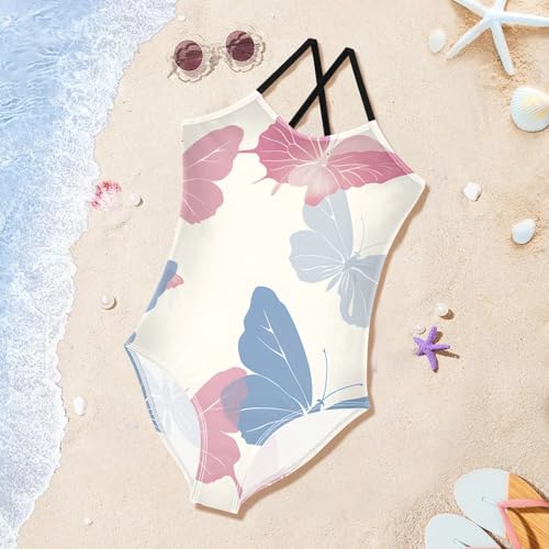 sought-after ! Bolaz Girls Swimsuits One-Piece Bathing Suits Multicolor Kids Sport Summer Beach Swimwear for 3-10 Years Old-Pastel Butterflies on Cream Pattern