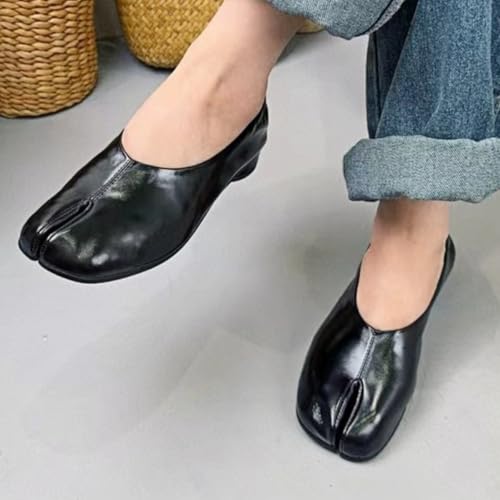 Tabi Shoes Slip-on Ballet Flats Genuine Leather Mary Jane Block Low Heels for Women Closed Split-Toe Low-Cut Comfort Minimalist Style
