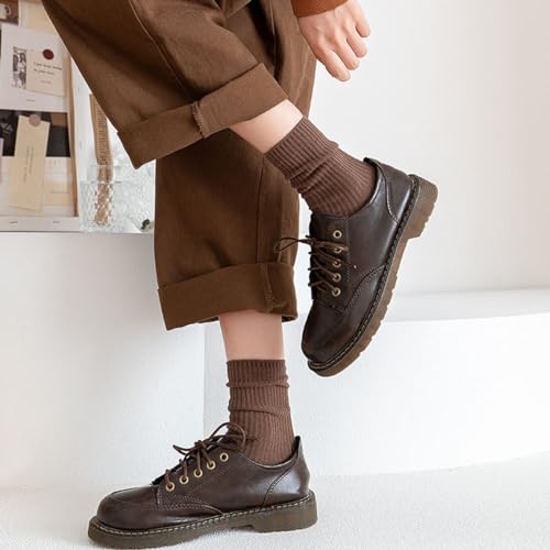 Womens Socks Neutral Cute Crew Socks Solid Color Cotton Boot Socks for Women Granola Girls Ladies 5/6 Pairs