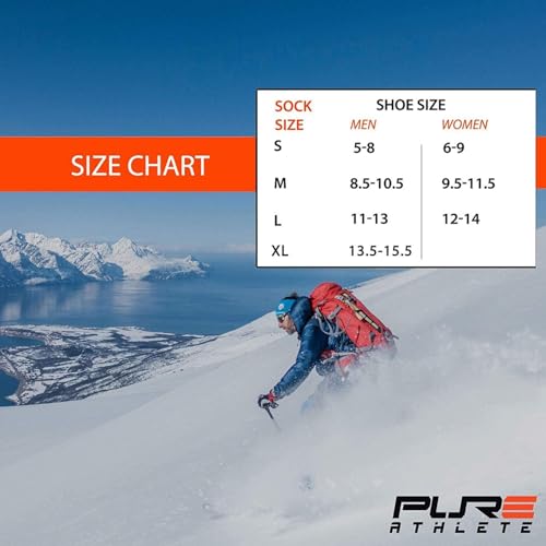 54% Nylon, 25% Merino Wool, 16% Polypropylene, 5% Lycra SpandexImportedKnee-High Men’s & Women’s Ski Socks: Our knee-high merino wool ski socks are designed for ultimate comfort and performance during winter activities like skiing, hiking, snowboarding, and more. These tall, warm socks keep your feet cozy in cold weather, making them an essential for extreme conditions. Crafted for durability and comfort, they’re the perfect men’s and women’s socks for outdoor adventures or long days in the snow.Extreme Cold Weather Socks: Pure Athlete’s thermal winter socks are made with high-quality merino wool, offering unbeatable warmth and protection in extreme cold. Their tall, knee-high design makes them ideal for skiing, snowboarding, hunting, or even work in winter conditions. Merino wool naturally regulates temperature and wicks moisture, ensuring your feet stay warm and dry. These socks are a must-have for anyone who values warmth and comfort in freezing temperatures.Midweight Design for Comfort: These medium-weight ski socks are thoughtfully designed to provide warmth without unnecessary bulk. Perfect for use as boot socks, they’re ideal for skiing, snowboarding, and other cold-weather activities. The balance of warmth and a streamlined fit ensures comfort without restricting movement. Whether you need thermal socks for extreme weather or winter adventures, these socks deliver functionality and a snug fit every time.Versatile Winter Gear: Our knee-high merino wool socks are a versatile choice for skiing, work, travel, or simply staying warm. Made from gentle, natural merino wool, they combine durability with comfort for reliable performance. The tall design adds extra warmth and coverage, making them perfect for snowy days, outdoor adventures, or lounging after a long day. These socks are more than an accessory—they’re a winter essential you’ll love wearing everywhere.Pure Athlete Quality You Can Trust: Pure Athlete designs every product with durability and comfort in mind, and these socks are no exception. Built for skiing, snowboarding, and other winter sports, they’re perfect for men, women, and kids alike. Merino wool and careful craftsmanship ensure warmth, performance, and reliability. Whether for yourself or as a gift for an outdoor enthusiast, these socks are the ultimate blend of function and style for winter adventures. Perfect for everyday use. finest materials and excellent craftsmanship ensure long-lasting durability.