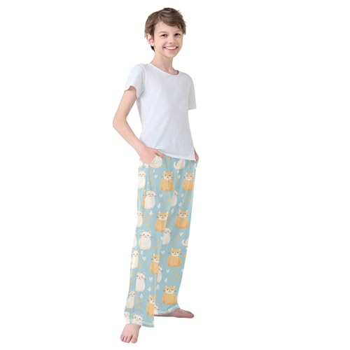 sought-after ! Cute Cat Long Pajama Pants Elastic Waist PJ Bottoms with Pockets S A110772