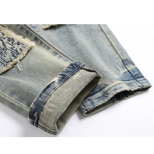 Men's Slim Fit Skinny Stretch Ripped Jeans,Distressed Straight Leg Fashion High Flex Waist Trousers