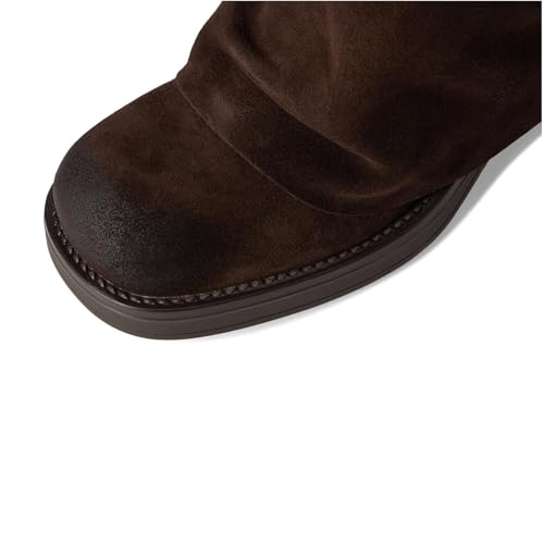 KysBloes Mid Calf Slouch Boots for Women Chunky Heel Fold Over Boot Closed Toe plush Slouchy Moto Boots