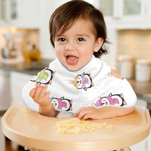 Burbuja Penguins Muslin Baby Burp Cloths, plush & Absorbent Cotton Burping Rags for Newborn Boys & Girls, 4 Pack