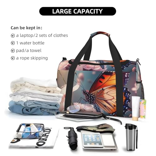 Butterfly Print Travel Duffle Bag - Foldable Personal Item Travel Bag for Women & Men,Carry-On Convertible Crossbody Tote Bags with Adjustable Shoulder Strap & Pockets 13x10.2x19.7 in