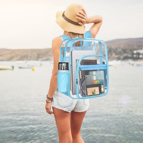 sought-after ! Clear Backpack,Sturdy Shape Heavy Duty Large Clear Backpack,Transparent Casual Backpacks,for Stadium,Work, Travel (Blue)