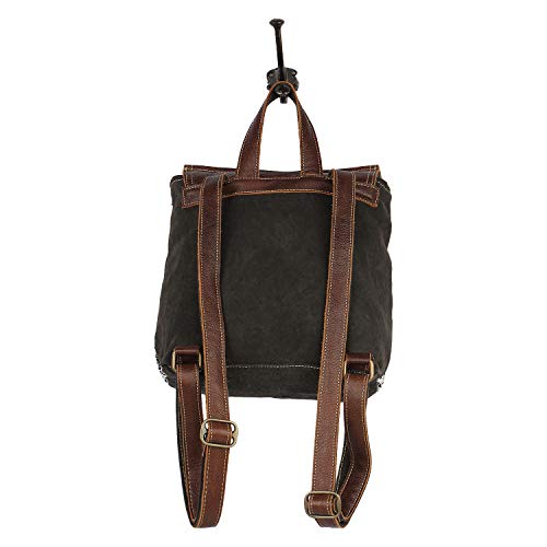 Closure type: ZipperLining: NylonItem Display Dimensions: 12.5 x 4.5 x 9.5 inches{Lightweight Canvas Backpack} You will love this brown leather backpack bag. With its subtle boho hints and unique pattern, you are sure to stand out from the crowd. The perfect rug bag for shopping, or even as a small carry-on bag for your vacation.{Perfect for Day or Weekend Trips} In addition to a well-organized main compartment of this Myra bag, there is also an exterior pocket for easy access to small items like your phone, wallet, keys, etc. This women’s backpack measures 12.5 x 4.5” x 9.5, with a top handle that is 4 long{Hand-Crafted Quality} We follow a specific process in the creation of our upcycled canvas purses and backpacks which includes material selection, washing, cutting, assembling, sewing, and finishing before our leather-trimmed womens canvas bags pass several quality standard checks. Each bag is uniquely crafted and has its own characteristics due to the various recycled materials used. We know you’ll love this quality purse{Vintage Versatility} With multiple zipper pockets in addition to the main compartment, this Myra backpack bag will fit many of your needs, making it a perfect choice for work, travel, or everyday use. Your new favorite hobo shoulder bag for on the go just got even better{Handcrafted for Uniqueness} With a classic boho chic look, this canvas and leather bag makes an excellent birthday gift, Christmas gift, or moving gift to any of the women in your life. Sure to bring admiring comments while also defining your own personal style Perfect for everyday use. High quality materials and excellent craftsmanship ensure long-lasting durability.