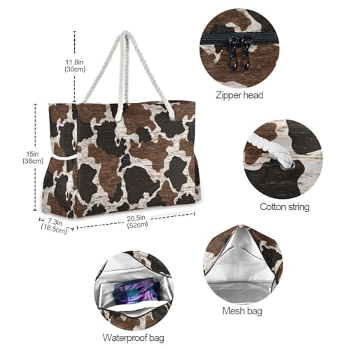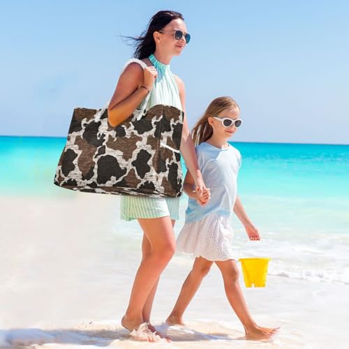 susiyo Cowhide Print Beach Bags for Women Large Travel Tote Bag Waterproof Sandproof Lightweight Swim Pool Bag for Family Outdoor