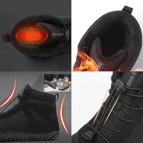 • PORTABLE DESIGN: Winter barefoot shoes adopt a reinforced wide toe design, anti-kick and anti-collision, and elastic shoelaces make it straightforward to put on and take off shoes