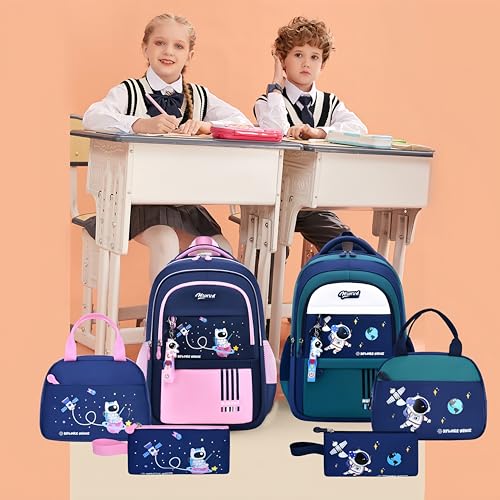 Size of Backpack for Boys: L 11.41 W 5.51 H 18.11 inches; L 29 W 14 H 46 cm; comes with an insulated lunch box and a pencil bag; the kids backpack with lunch bag is sturdy, vivid colors and good size for primary school studentsMaterial: The boys backpack with lunch bag set is nylon fabric, sturdy polyester lining, water-resistant, easy to clean, strong zippers, seams are well done, the backpack is lightweight yet sturdy ensures it can withstand the wear and tear of daily useGreat Pockets for Organization: The children backpack has Lots of pockets and space, big enough for school supplies a student could need; Insulated lunch bag also keeps lunches fresh and cool throughout the day; Pencil bag keeps pens, pencils, erasers, and other small school supplies organized and easily accessible, eliminating the need to rummage through the backpack in search of essentialsComfortable to Carry: The girls boys backpack for school with adjustable thick shoulder straps and padded back, padded top carry handle, very pleasant, breathable, lightweight kids backpack set will definitely last the whole year or more with your little one, children will loves the elementary school bags for girls boysVersatile: The boys backpack and lunch bag is a practicality option for elementary school students for school, daily, travel, camping and casual hiking; cool astronaut space bookbag that most kids really like, your kids will get compliments from his friends and will happily use backpack in whole the school year Perfect for everyday use. excellent materials and excellent craftsmanship ensure long-lasting durability.