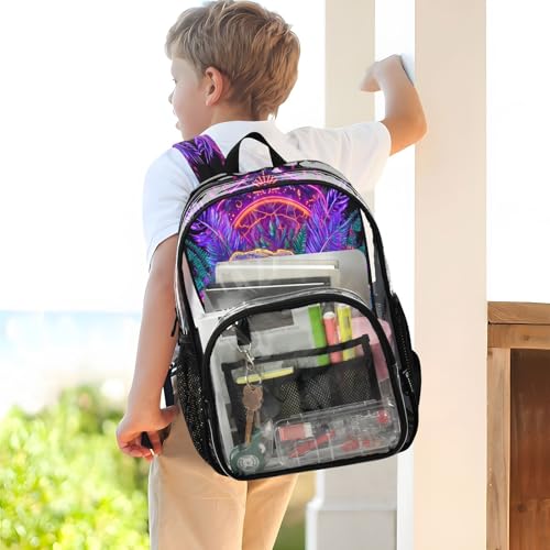 Clear Backpack for School Crocodile Skull Neon Lights Jungle Plants Flowers Transparent Bookbag for Girls See Through PVC Boy Backpacks
