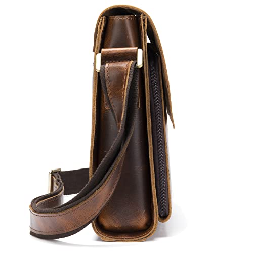 [Material]: The bag is made of the first layer of cowhide as the fabric and polyester as the inner lining. Adjustable-length shoulder straps are made of gentle polyester and leather to reduce shoulder pressure[Size]: 22x5.5x26cm (LxWxH). Weight: about 1100 grams.[Structure]: There is a zipper bag on the front, which is used to store mobile phones, documents and other commonly used items. There is 1 object pocket and 1 inner zipper pocket in the main pocket, which can be used to hold books, wallets, iPads, etc. 1 zip pocket on the back for IDs, key cards, etc.[Practicality] - The leather bag is high-grade, suitable for shopping, going to school and commuting. It is the first choice gift for father's day, christmas, birthday[Tips]-Because of different measurement methods, there is a 1-2cm error in the size, due to different shooting angles and lighting effects, there is a slight error between the actual color and the picture, which is normal Perfect for everyday use. excellent materials and excellent craftsmanship ensure long-lasting durability.