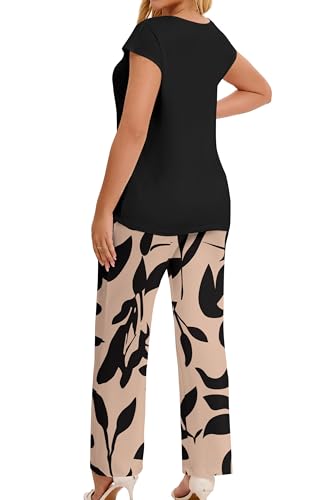 sought-after ! Pink Daisy Women‘s Casual 2 Piece Lounge Set Cap Sleeves V Neck Top Wide Leg Print Pants with Pockets Vacation Travel Daily