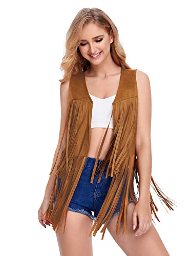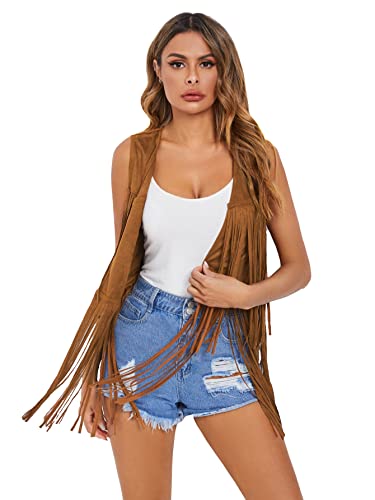 More information about Verdusa Women's Tassel Sleeveless Vest 70s Hippie Faux Suede Fringe Jacket Cardigan
