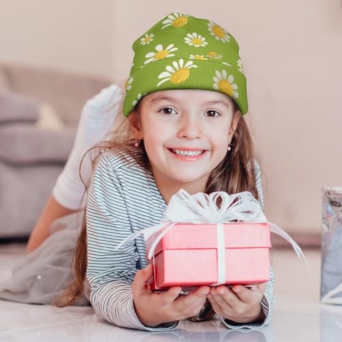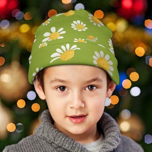 sought-after ! Cute Daisy Print Kids Beanie Hat for for Girls Boys Children Cap Winter Knitted Chemo Cancer Headwear Accessories Gifts Decoration Black