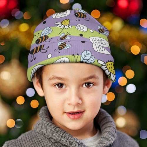 sought-after ! Cute Daisy Honey Print Kids Beanie Hat for for Girls Boys Children Cap Winter Knitted Chemo Cancer Headwear Accessories Gifts Decoration Black