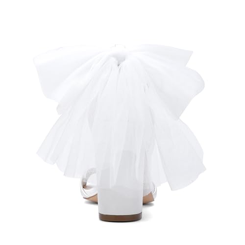 sought-after ! Women's Satin Wedding White Bow Heels for Women Block Chunky White Heels Wedding Shoes for Bride White Dress Shoes for Women