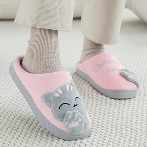 Sole material: Thermoplastic RubbersOuter material: PlushClosure type: Pull-OnUltra-Soft & Comfy Cat Slippers: The house slippers are made of warm and pleasant plush fabric, will keep your feet warm and comfortable in autumn and winter.Cute Design: The cat embroidery on the upper makes these slippers even more cute and charming.Durable & Anti-slip TPR Sole: Our slippers with the hard and flexible TPR sole allow you to walk steadier indoors and outdoors.Cushion&Support: excellent memory foam makes the sole fit your feet better. After a busy day, this pair of slippers can help you relax quickly and enjoy your life at home.Walking Around the House: Slip into these house slippers and enjoy the time in your sweet home, after shower or during a casual family talk. You can go out to fetch the mail, walk the dog, or walk around the house without changing your slippers. Perfect for everyday use. High quality materials and excellent craftsmanship ensure long-lasting durability.