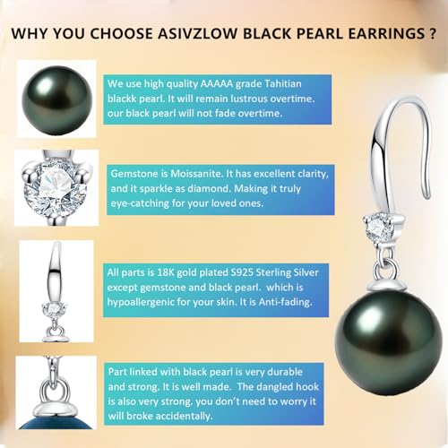 AAAAA Grade Real Tahitian Black Pearl Dangle Earrings Anniversary birthday Wedding Valentines Christmas Mothers Day Gift for Wife Women Mom Girlfriend Friends Daughter