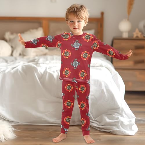 Pajama Sets Long Sleeve Floral Design on Red Background gentle Comfy Sleepwear 2 Piece PJS 3-8T