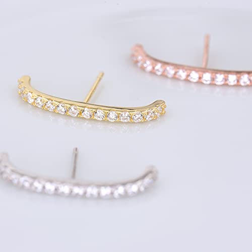 18K Gold Plated Sterling Silver Paved Gemstone Curved Bar Ear Cuffs Suspender Earrings CZ Huggie Earrings