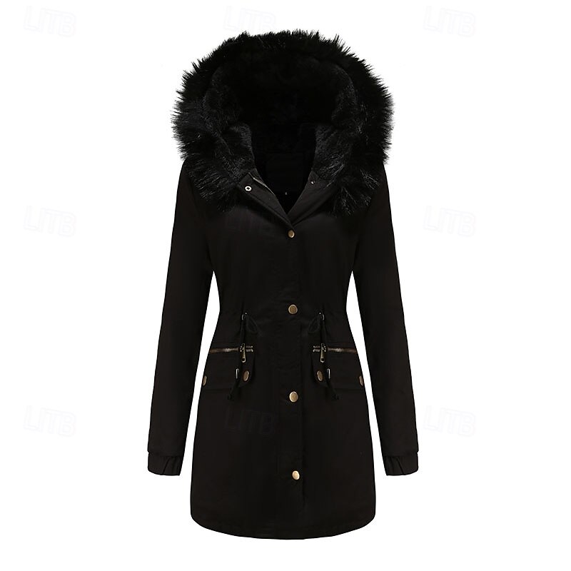 This Women's Parka Warm plush Zipper Pocket With Belt Casual Solid Color Vacation Street Casual Daily Wear Long Hooded Loose Fit Long Sleeve Outerwear Navy Black Wine Fall Winter combines elegant design with practical functionality. Every detail has been carefully considered to ensure you get the best possible experience. The finest construction means this product will serve you well for years to come.