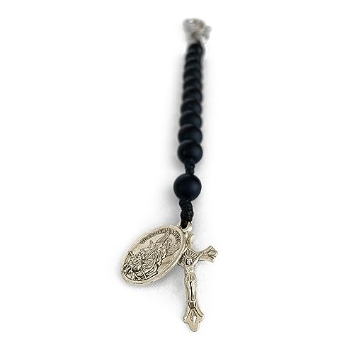 More information about Catholic Prayer Pocket Rosary Saint Michael the Archangel Medal Black Beads Corded Rosary Keychain Tenner Open Style One Decade Rosary