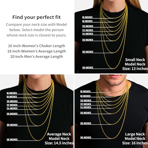 Material: Sterling SilverMetal type: Sterling SilverClasp type: LobsterChain type: BoxGem type: No GemstoneItem type name: Chain NecklacesMaterial & Size: Nickel Free 925 Sterling Silver Over 18K Gold. Stamped 925 and ITALY. Sturdy 1mm box chain. The size of the loop at the end of our chains is 10mm in diameter, perfect for a pendantAvailable Diameter: The 1 mm diameters can be matched to create different styles. This gold necklace has a good reflective effect, resists oxidation, makes it shiny and prevents tarnishingOccasions: Every gold chain comes with cards and polishing cloth, it can be worn alone or perfectly fit for any charm like pendant, couple rings, etc. Also can be cute for valentine, friends, relatives and so onCare: The way to take care of long and thin gold chain is to remove it any time you use harsh chemicals like cleaning agents, lotions, hairspray, powdersMaintenance: Use A gentle toothbrush and warm water to remove any residue, and a soft cloth will gently clean and polish Perfect for everyday use. excellent materials and excellent craftsmanship ensure long-lasting durability.