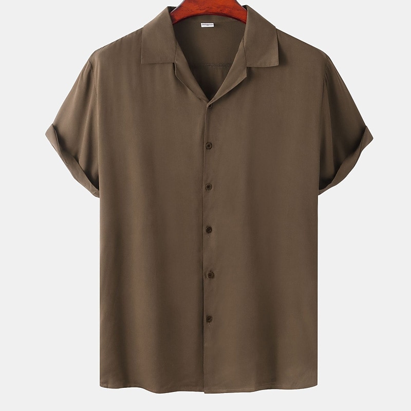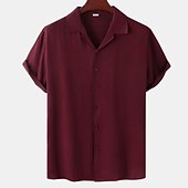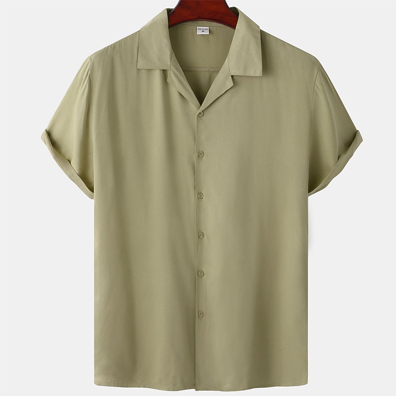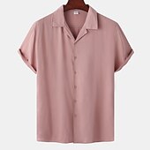 Men's Shirt Summer Shirt Casual Shirt Cuban Collar Shirt Button Up Shirt Camp Collar Shirt White Yellow Pink Wine khaki Short Sleeve Plain Turndown Vacation Street Buttons Clothing Apparel Polyester