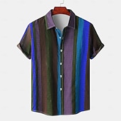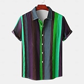 This Men's Striped Geometric Pattern Button Up Shirt Short Sleeve Vintage Casual Vacation Daily Hawaiian Summer Spring Collared Shirts Button Up 3D Print Light Green Blue Purple Green combines elegant design with practical functionality. Every detail has been carefully considered to ensure you get the top possible experience. The top-grade construction means this product will serve you well for years to come.