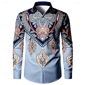 More information about Men's Paisley Ethnic Flowers Shirt Button Up Shirt Casual Dress Shirt Long Sleeve Vintage Retro Vacation Daily Streetwear Summer Spring Turndown 3D Print Collared Shirts Blue