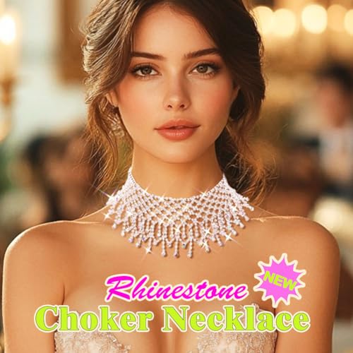 sought-after ! JAKAWIN Silver Rhinestone Choker Necklace Bling Diamond White Chokers for Women