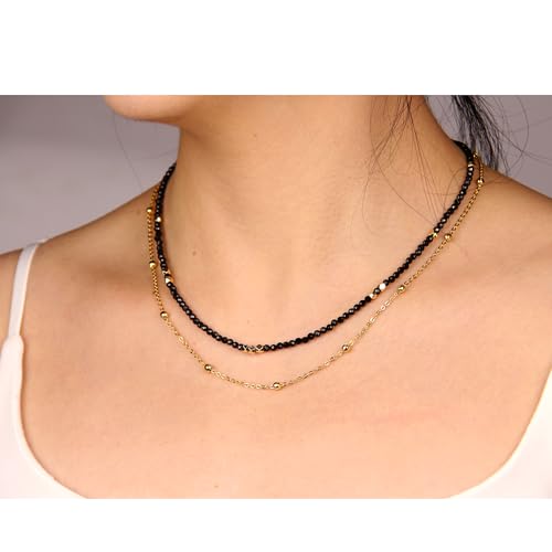 Beaded Necklaces for Women - 3mm Handmade Natural Stone Choker Healing Crystal Necklace Layered Gold Necklaces for Women Dainty Necklace Jewelry Gifts