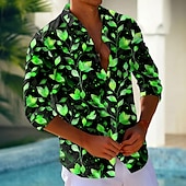 More information about Men's Leaf Neon Glow Shirt Button Up Shirt Long Sleeve Fashion Casual Holiday Streetwear Summer Spring Turndown 3D Print Collared Shirts Pink Blue Purple Green
