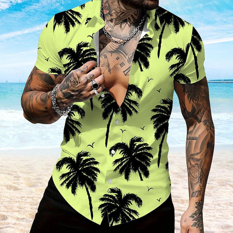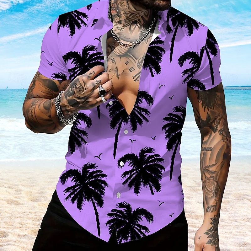 More information about Men's Coconut Palm Casual Shirt Summer Hawaiian Shirt Aloha Shirt Short Sleeve Hawaiian Resort Vacation Casual White Blue Purple Green