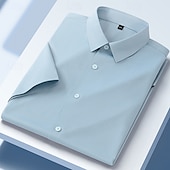 Highlights [Fabric] : Crafted from premium polyester, this men's short-sleeve dress shirt offers excellent breathability and comfort, making it perfect for warm summer days. The fabric is designed to maintain its pristine appearance with easy care options like washable and wet or dry cleaning. [Fit] : The shirt features a traditional and formal design with a standard fit that balances comfort and style. Tailored to provide a polished silhouette, it's suitable for various social and professional settings. [Design Highlights] : Featuring a traditional turndown collar, this shirt adopts a classic button-up style with carefully matched buttons to maintain a cohesive and sophisticated appearance. The plain design lends itself to versatility, making it easy to match with different outfits and occasions. [Occasions] : Ideal for weddings, daily wear, or returning to the office, this shirt suits formal and smart casual occasions alike. Its light blue hue and elegant design make it a staple for anyone looking to enhance their wardrobe with a touch of refined simplicity. [Size] : Available in a range of sizes from S to 2XL, this shirt accommodates different body types, ensuring a comfortable and tailored fit for a wide audience. Perfect for everyday use. excellent materials and excellent craftsmanship ensure long-lasting durability.