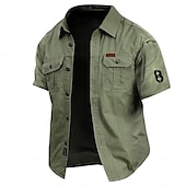Highlights [Fabric] : Crafted from 100% durable cotton, this menβs short-sleeve shirt ensures breathability and comfort, making it ideal for both adventurous outings and daily wear. Its micro-elasticity provides ease of movement, enhancing the overall comfort. [Fit] : Featuring a regular fit, this shirt offers a classic silhouette that accommodates a wide range of body types. The button-up design and fold-over collar contribute to its timeless and versatile appeal. [Design Highlights] : The shirt's standout design includes letter prints that add a modern twist. It is equipped with two functional chest pockets with button closures, perfect for keeping essentials close at hand. A decorative patch on the sleeve introduces a special touch, enhancing its casual style. [Occasions] : Suitable for a variety of occasions such as outdoor sports, camping, hiking, and casual outings. Whether youβre heading into the great outdoors or simply out for the day, this shirt is a great choice for spring and summer activities. [Size Range] : Available in a wide size range from S to 2XL, this shirt caters to adult men seeking both style and comfort. The versatile color options, including Dark Blue, Army Green, and Khaki, ensure adaptability to different wardrobe preferences. Perfect for everyday use. excellent materials and excellent craftsmanship ensure long-lasting durability.