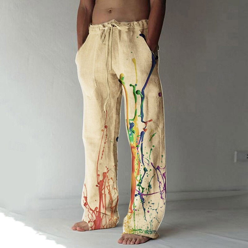 More information about Men's Graphic Prints Graffiti Linen Pants Trousers Summer Pants Mid Waist Fashion Streetwear Casual Daily Drawstring Elastic Waist Front Pocket Spring & Summer 3D Print Light Khaki Black White