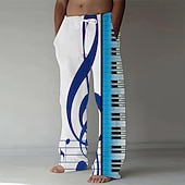 Why Choose Men's Piano Musical Notes Trousers Baggy Pants Casual Pants Mid Waist Vintage Retro Vacation Holiday Elastic Drawstring Waist Linen-prefer Pants with Pockets Summer Spring 3D Print Black Blue?