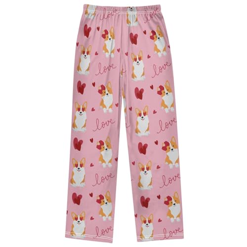 Boy's Pj Pants Valentines Day Corgi Dog Heart Lounge Bottoms Elastic Waist Kids Joggers with Pockets Size 6-14