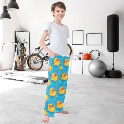 Boy's Pants Cute Duck in Water Jogger Pants Elastic Waist Long Bottoms Trousers with Pockets 6-14 Years