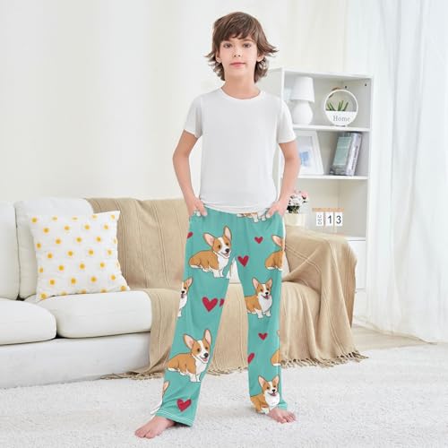Corgi Dog Red cherish Boys Long Pants plush Trousers Elastic Waist Kids Lounge Bottoms with Pockets S-XL