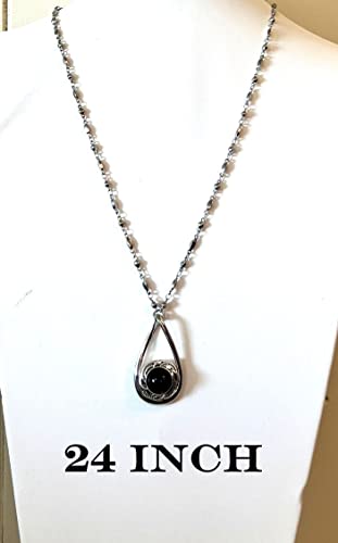 Item width: 1.5 inchesMaterial: MetalMetal type: Stainless SteelClasp type: Lobster ClaspGem type: Snap 18mm buttonsBeautiful 18 or 24 inch Stainless Steel Necklace Snap Interchangeable jewelry offers style and fun. You can change the look of your necklace with just a snap of your fingers!5 SNAP BUTTONS - Comes with 5 interchangeable 18mm buttons. Made with stainless steel jump rings, extender, 14mm lobster clasp and chain - SUPER strong Necklace.We hang our pendants on the chain with two jump rings so that your clasp will NOT slip around to the front of your neck. The two jump rings hold the pendant facing forward and eliminates your pendant constantly hanging backwards.We use 18 or 24 inches of elegant fancy stainless steel chain for this necklace.Made In The USA β These beautiful necklaces are handmade here in the USA Perfect for everyday use. finest materials and excellent craftsmanship ensure long-lasting durability.