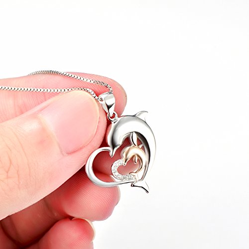 Item display length: 45.3 centimetersMaterial: Sterling SilverMetal type: Sterling SilverClasp type: Spring RingChain type: BoxGem type: Cubic Zirconia❤Mother and child dolphin necklace,mother dolphin protect the little baby form a heart shape show the great maternal love,the love between mother and daughter or son will last forever,Dolphins are symbols of wisdom, friendliness, good luck, and pure affection between mother and child,it is a special necklace gifts for mother, grandmother, daughter, aunt, mom,mother-in-law,grandma,nana,granny❤Dolphin necklace for women jewelry made of 925 sterling silver,rose gold plated,rose gold plated,nickel-free,lead-free,cadmium-free and does not contain any allergic material,it is pleasant to wear and no harmful to health❤Womens dolphin necklace pendant size:21*21 mm,box chain length: 18, weight:4.56g for dolphin pendant and box chain,great gifts for dolphin lover❤Dolphins jewelry comes with a gift box,it is perfect as birthday gifts,graduation gifts,anniversary gifts,thanksgiving gifts,christmas gifts,mother's day gifts,valentines day gifts,anniversary gifts,retirement gifts,holiday gifts,vocation gifts❤Please feel free to contact us if you’re not completely satisfied with dolphin gifts,we will help you soon,thanks for your support,we sincerely hope this love heart necklace could bring you good luck all time Perfect for everyday use. finest materials and excellent craftsmanship ensure long-lasting durability.