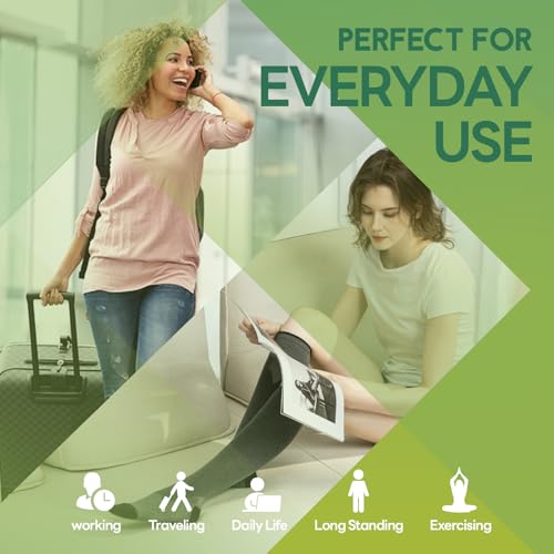 • Graduated Compression: Our compression socks use graduated compression technology to significantly improve blood circulation. This system applies the strongest compression at the ankle, decreasing progressively up the leg. Such a gradient aids in propelling blood back toward the heart, mitigating lactic acid accumulation, and effectively reducing leg fatigue and swelling. so that, our socks are an exceptional choice for athletes, frequent travelers, and office workers with sedentary jobs.