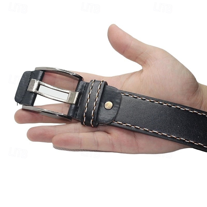 Highlights [Fabric] : Crafted from a blend of high-quality alloy and PU leather, this men's belt offers a current contemporary style with a durable and refined finish. The leather provides a classic look while ensuring long-lasting wear. [Silhouette] : Designed as a waist belt, this accessory features clean, solid lines that encapsulate modern minimalism. Its timeless shape makes it an ideal addition to any wardrobe, seamlessly complementing various outfits. [Design Highlights] : The belt showcases an embellished and embroidered pattern with a double needle buckle, which adds a touch of sophistication. The polished metal buckle not only provides a sleek appearance but also ensures a secure and comfortable fit, while the distinctive white stitching along the edges offers an elegant contrast. [Occasions] : Perfect for daily wear, vacations, casual outings, festivals, and weekend get-togethers. Whether you're heading to the office or out to a casual gathering, this versatile belt adapts to both formal and casual settings effortlessly. [Size Notice] : Available in one size, this belt is designed with multiple notches for adjustable sizing, ensuring a comfortable fit for a variety of body types. Perfect for everyday use. excellent materials and excellent craftsmanship ensure long-lasting durability.