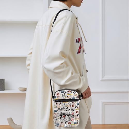TSOTMO Crime Show Fan Gift Shhh I'm Listening To True Crime Podcasts Crossbody Bag Crime Lover Gift
