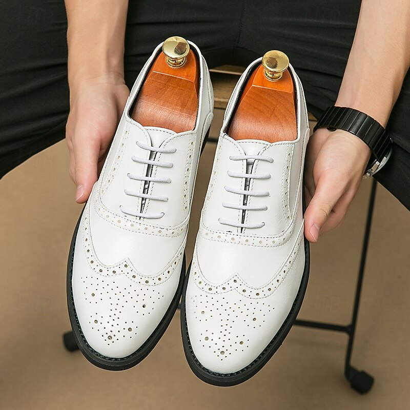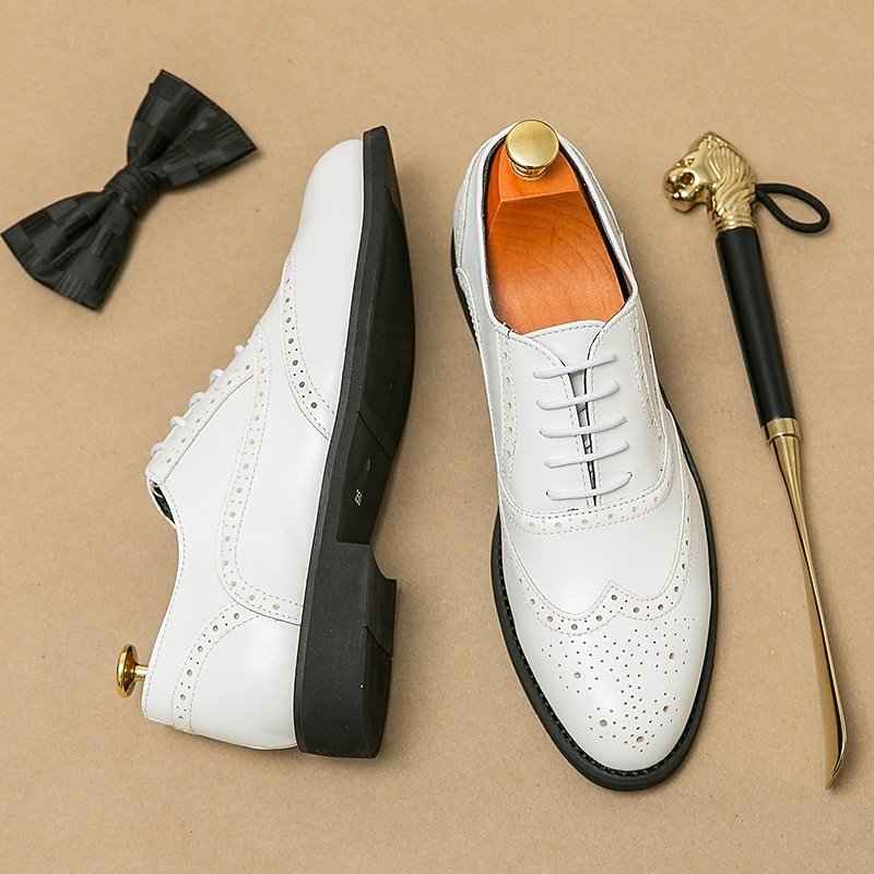 Why Choose Men's Two-Tone Wingtip Oxford Brogue Shoes in Brown and White, Genuine Leather Gatsby-Inspired 1920s Vintage Dress Shoes for Wedding, Jazz Party, and Formal Events?