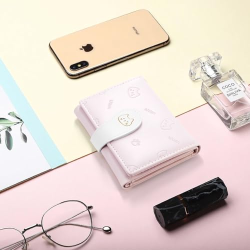 Cute Wallets for Women, Small Women Wallet PU Leather Bifold Card Holder ID Window Purse for Women Girls (Pink)